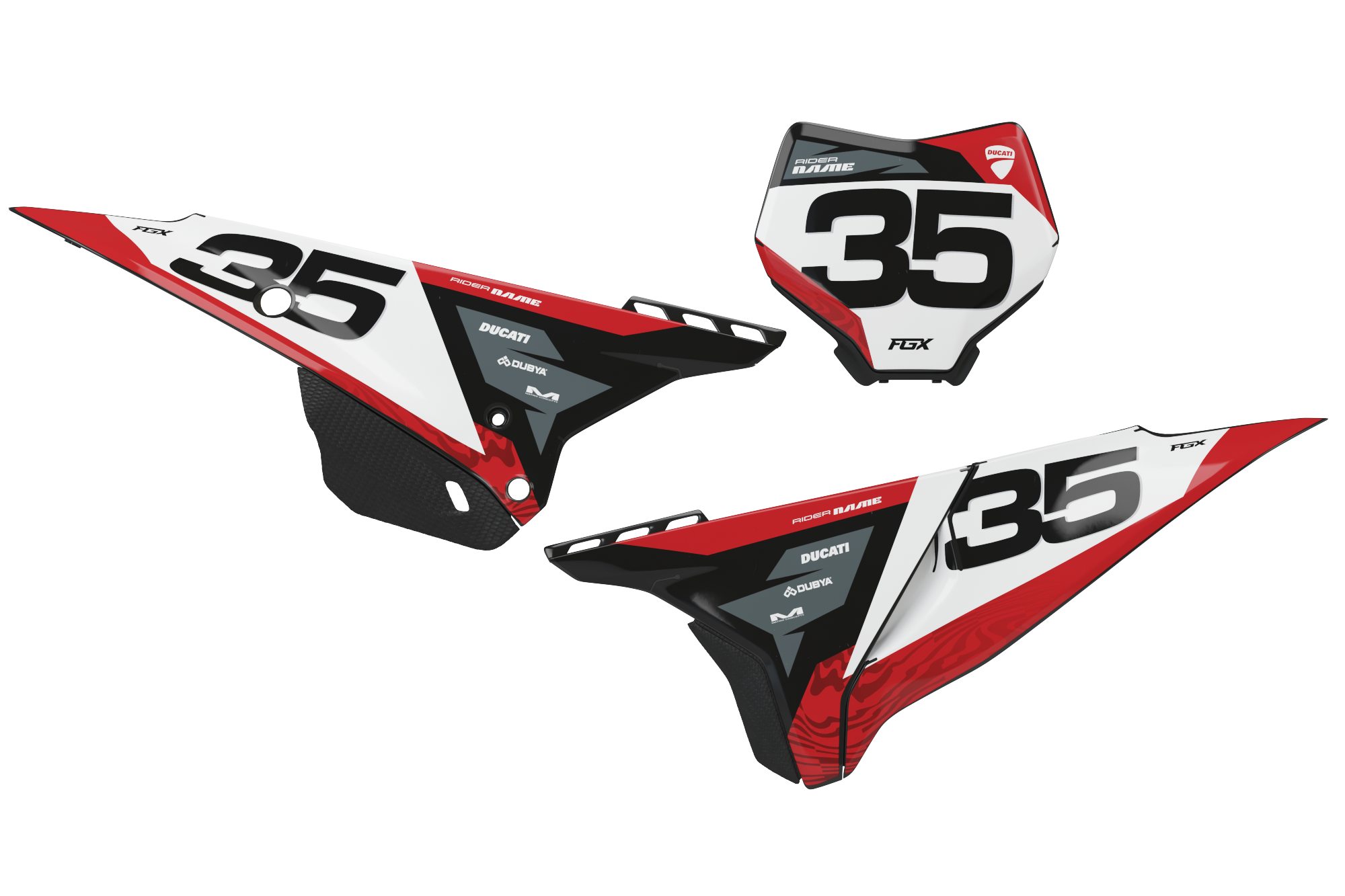Fusion number plate backgrounds include one set of printed graphics - Side Number Plates & one Front Number Plate