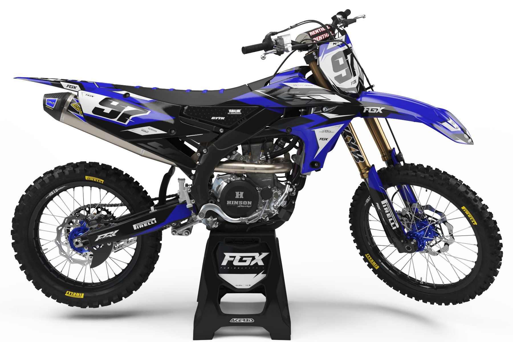 This design features : Sporty "YZ" design along the radiator shrouds, Offset path around numbers along side panels to attend to the desired number background color.